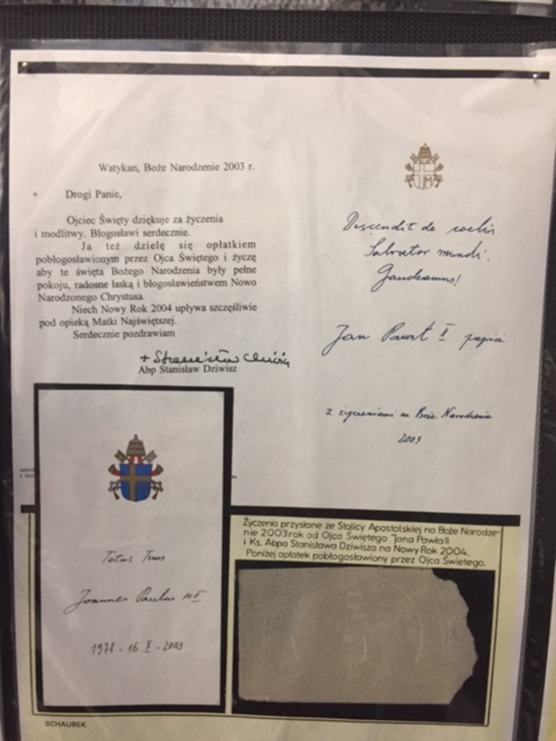 Po przywitaniu gości głos zabrał autor eksponatu kolega Bolesław Mostek, który w skrócie opowiedział o swojej pasji filatelistycznej i o prezentowanym eksponacie. Wszystkie opisy na kartach wystawowych wykonał odręcznie bez pomocy komputera. Eksponat zawiera ponad 800 kart wystawowych, na których prezentowane są walory filatelistyczne z całego świata związane z osobą papieża Jana Pawła II począwszy od 1978 roku, aż do końca pontyfikatu. Znajduje się wśród nich korespondencja kolegi Bolesława z papieżem wraz z autografem i opłatkiem przysłanym z Watykanu. Goście pogratulowali koledze Bolesławowi Mostkowi wykonanie tak wspaniałego eksponatu .