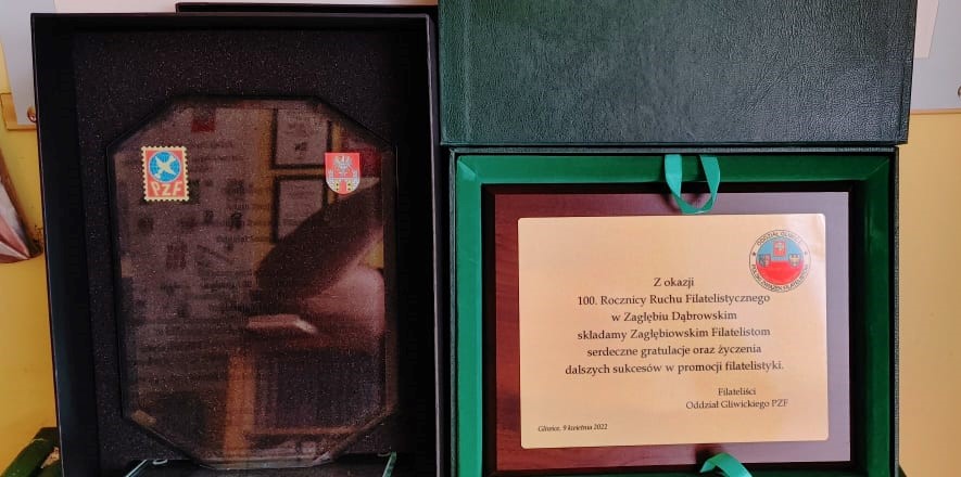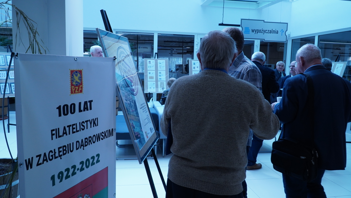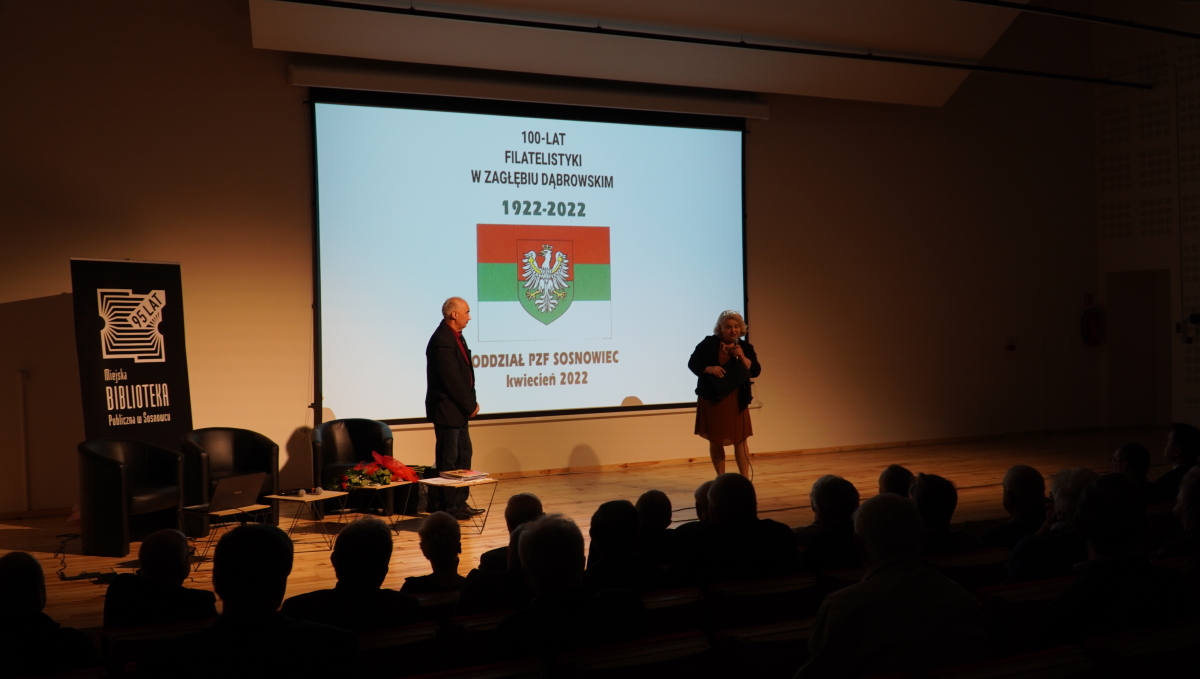okreg slasko dabrowskiW dniu 29 kwietnia 2022 roku w Miejskiej Bibliotece Publicznej im. Gustawa Daniłowskiego w Sosnowcu odbyło się uroczyste spotkanie filatelistów i zaproszonych gości z okazji jubileuszu 100-lecia filatelistyki w Zagłębiu Dąbrowskim. Powitania dokonała dyrektor MBP Elwira Kabat-Georgijewa, a z ramienia Polskiego Związku Filatelistów Oddział Sosnowiec – prezes Adam Znojek. Na uroczystość przybyli także: poseł na Sejm RP IX kadencji Mateusz Bochenek, dyrektor Urzędu Miasta Czeladź Małgorzata Ochenduszko, prezydent miasta Sosnowca Arkadiusz Chęciński, starosta Powiatu Będzińskiego Sebastian Szaleniec, przewodniczący Rady Powiatu Będzińskiego Jan Powałka.