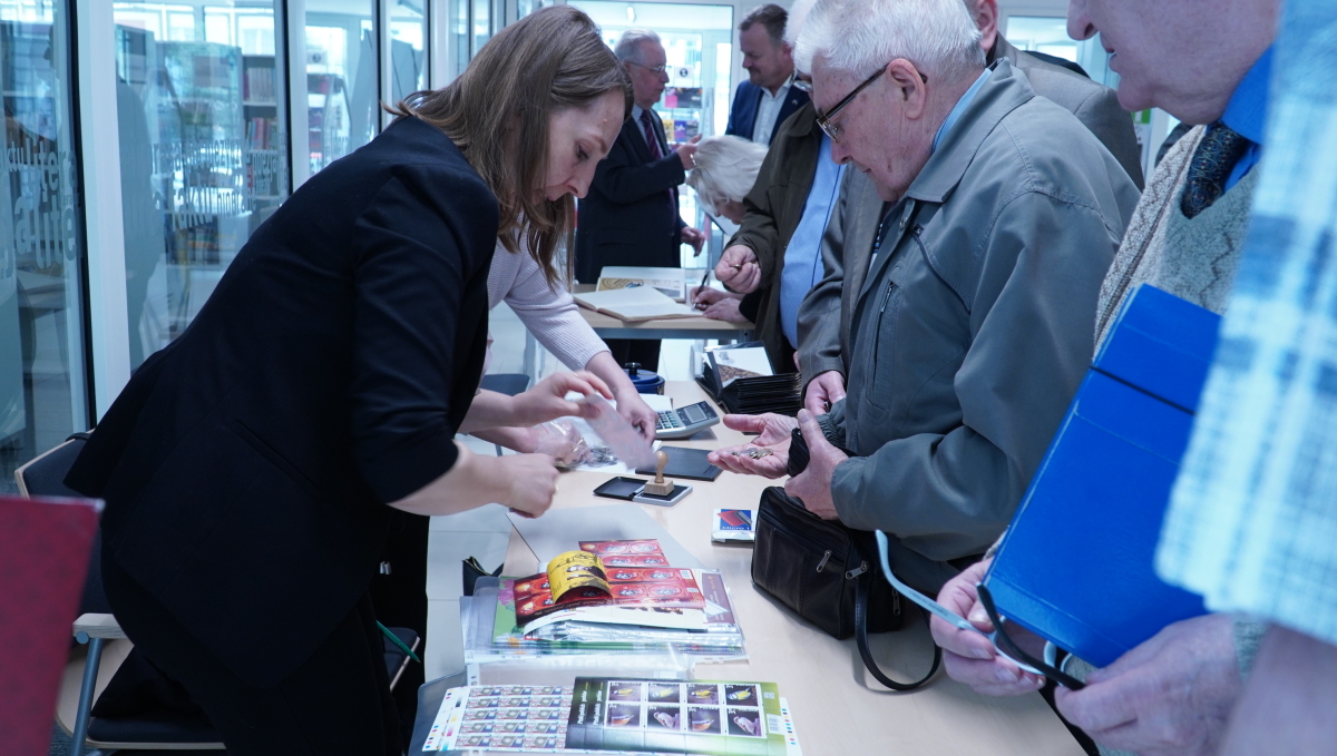 Po części oficjalnej zaproszono wszystkich zgromadzonych do stoiska Poczty Polskiej (którą reprezentowały Kamila Kożuszkiewicz oraz Elżbieta Kandora), gdzie można było zakupić walory filatelistyczne wydane z tej okazji (kartkę pocztową, MójZnaczek, datownik okolicznościowy).