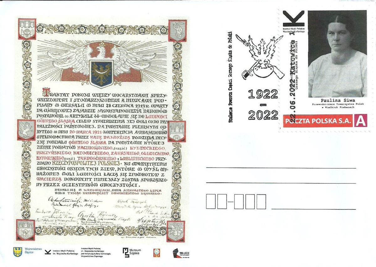 Fot 01Instytut Myśli Polskiej im. Wojciecha Korfantego przy pomocy Okręgu Śląsko - Dąbrowskiego Polskiego Związku Filatelistów, zorganizował Wystawę Filatelistyczną pod tytułem “Stulecie powrotu części Górnego Śląska do Polski”. Uroczyste otwarcie wernisażu wystawy odbyło się w środę 22 czerwca 2022 roku o godzinie 16:00, w sali Audytorium w Muzeum Śląskim w Katowicach przy ulicy T. Dobrowolskiego 1.