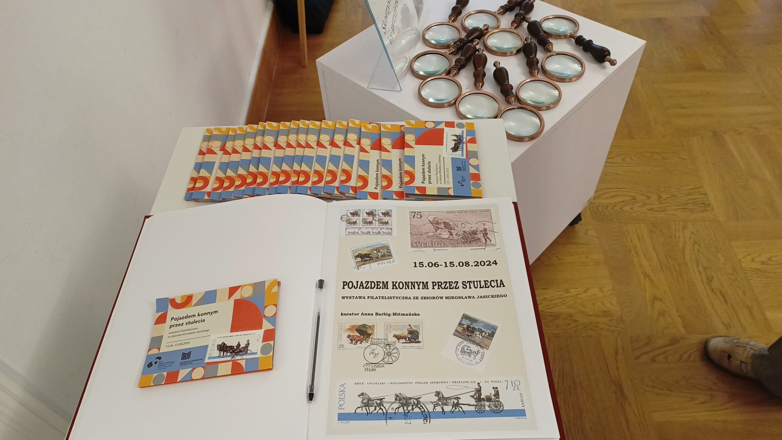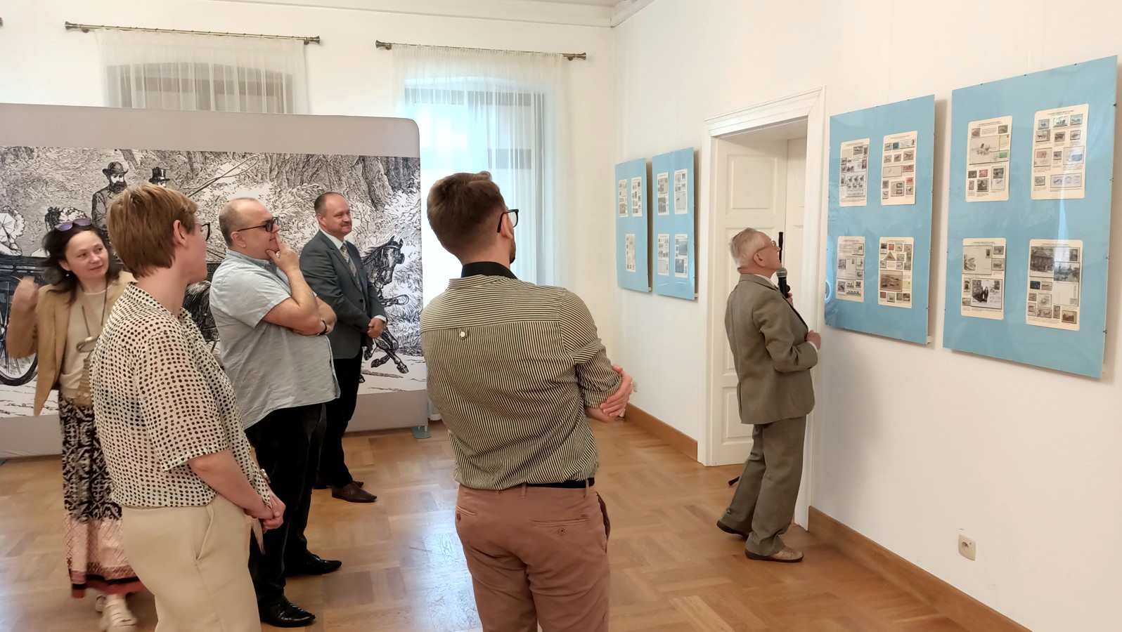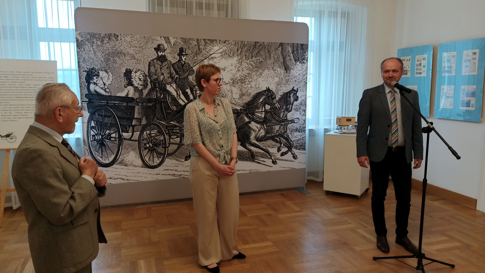Wernisaż rozpoczęło wystąpienie pracowników muzeum, m.in. kurator wystawy Anny Barłóg-Mitmańskiej, a następnie Mirosław Jasicki oprowadził zebranych po swoim eksponacie, przybliżając co ciekawsze i bardziej wartościowe walory filatelistyczne. Zwiedzający mogli je dobrze obejrzeć, bo do ich dyspozycji były oryginalne lupy. Pokazywanym w eksponacie pojazdom konnym towarzyszyły piękne modele karet znajdujących się w zbiorach muzeum.